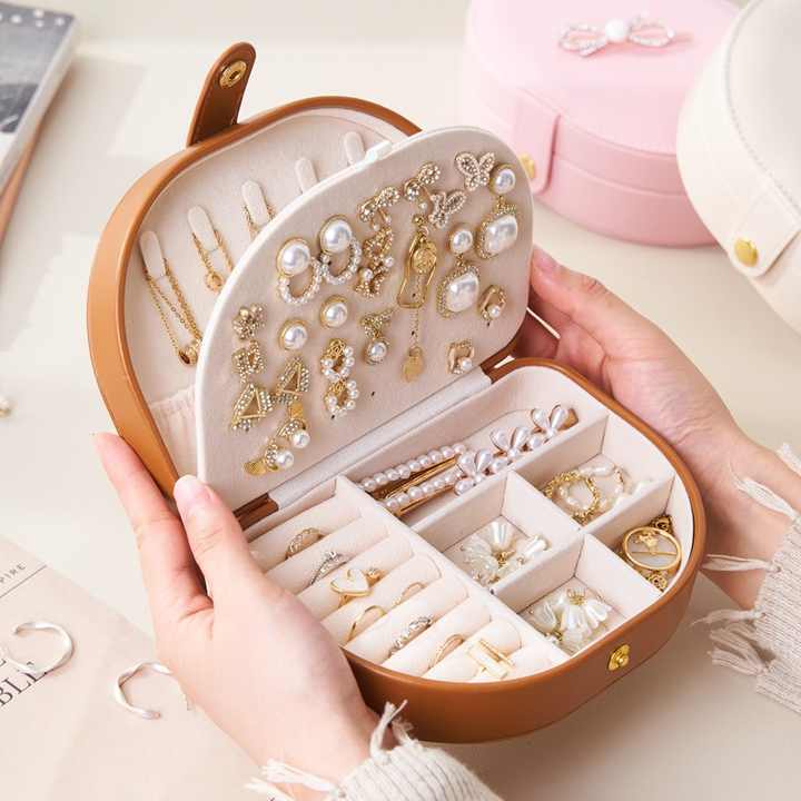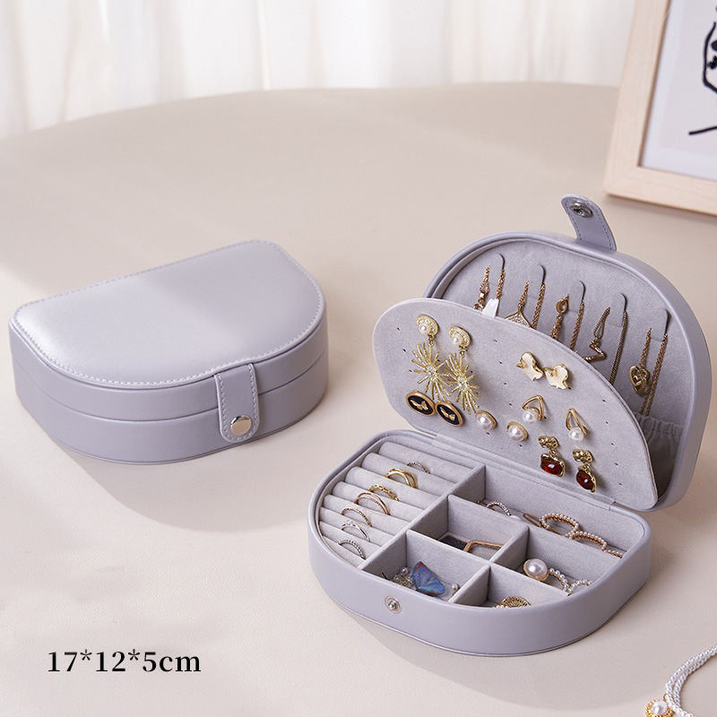 Wholesale Customizable Small PU Leather Jewelry Storage Gift Box Portable Travel Oval Seashell with Snap Button