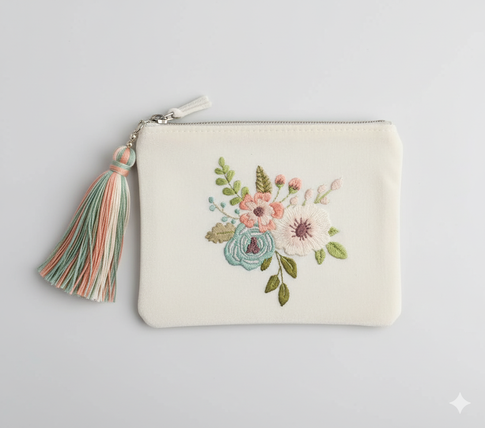 Wholesale Customizable Nylon Fabric Hand Embroidered Beaded Makeup Bag Fashionable Cosmetic Bags Jewelry Storage Foldable Zipper