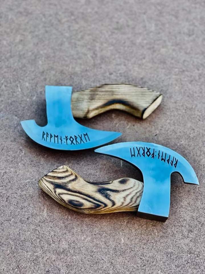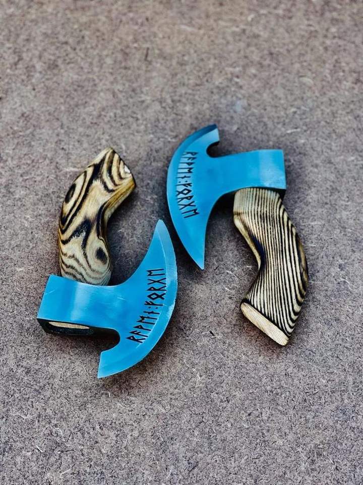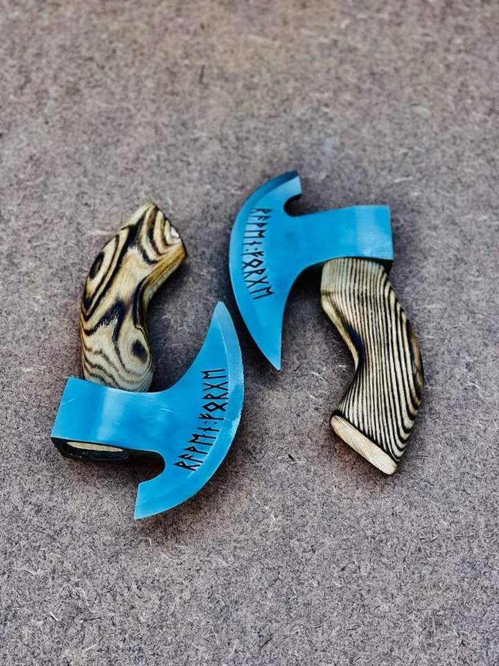 Wholesale Customization New Damascus Blade Pizza Cutter with Viking Axe Design Leather Sheath for Kitchen Use Chef Knife Set