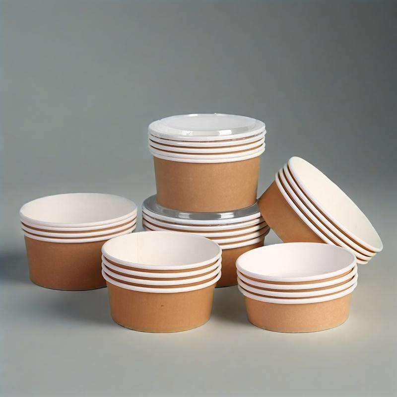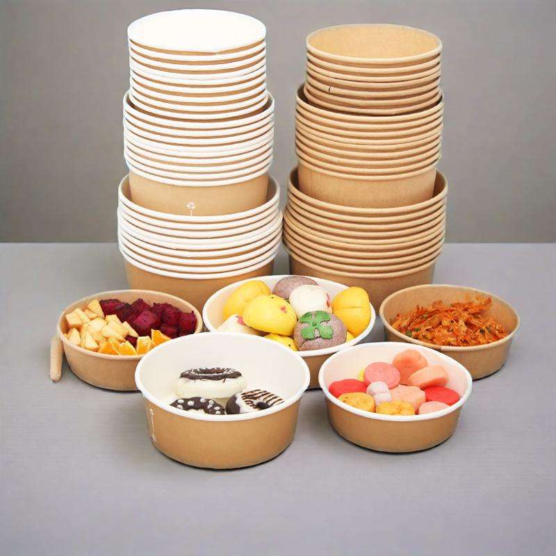Wholesale Customization Single Wall Bi-Color Paper Bowl Thickened Meal Box Cup Light Food Salad PET Lids Take Away Food Bowl