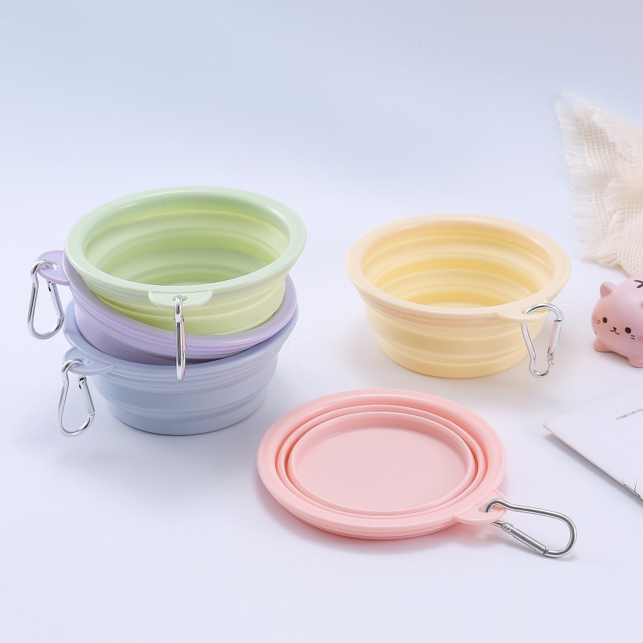 Wholesale Customize Logo TPE Feeder Outdoor Portable Food and Water 2 in 1 with Buckle Colorful Durable Foldable Pet Bowl