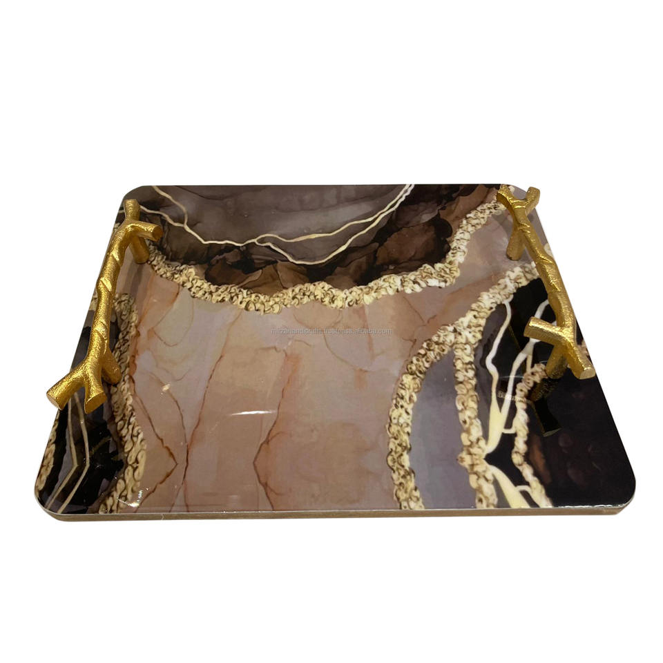 Wholesale Customize Square Marble Tray Handcrafted coffee tray with Good Quality Custom resin tray set