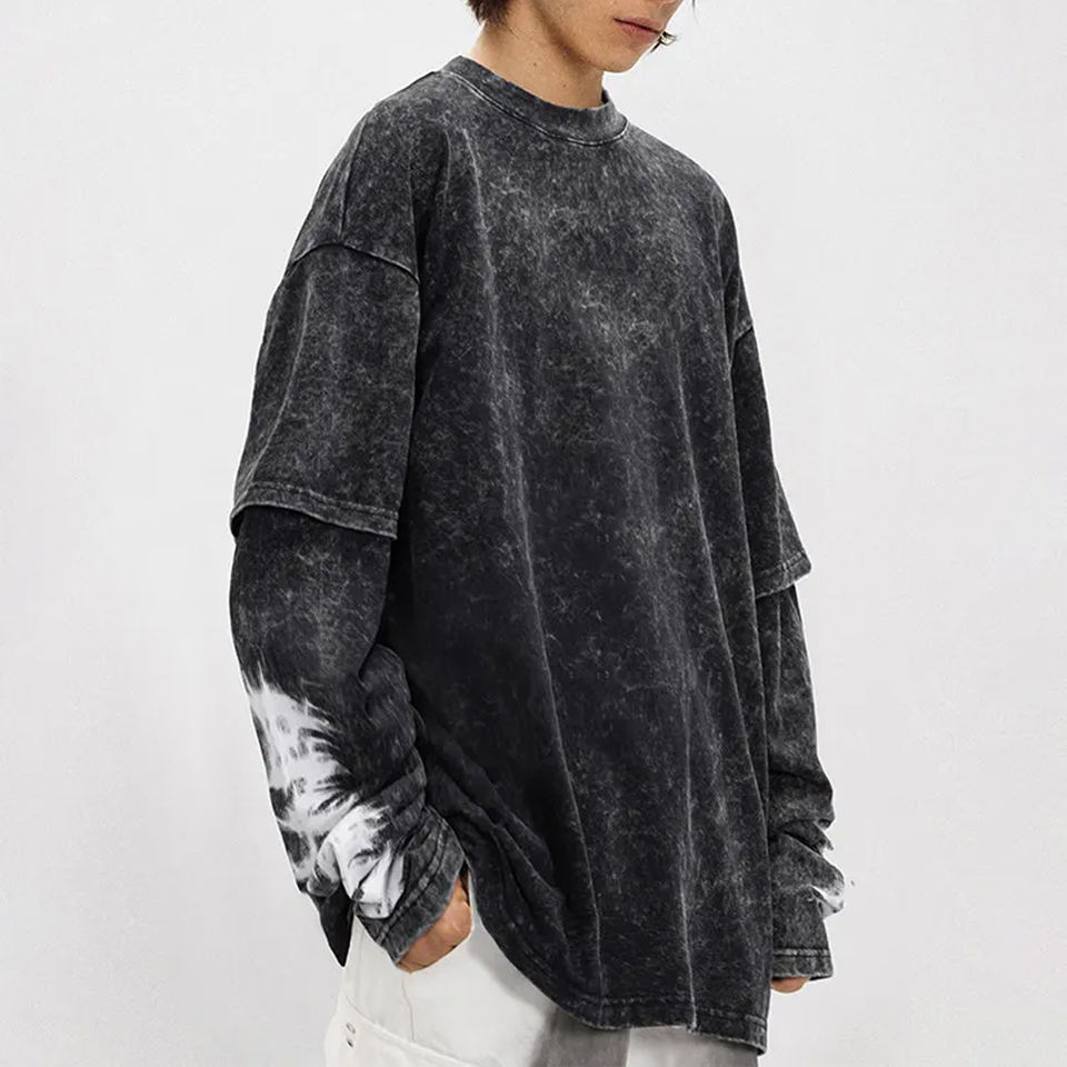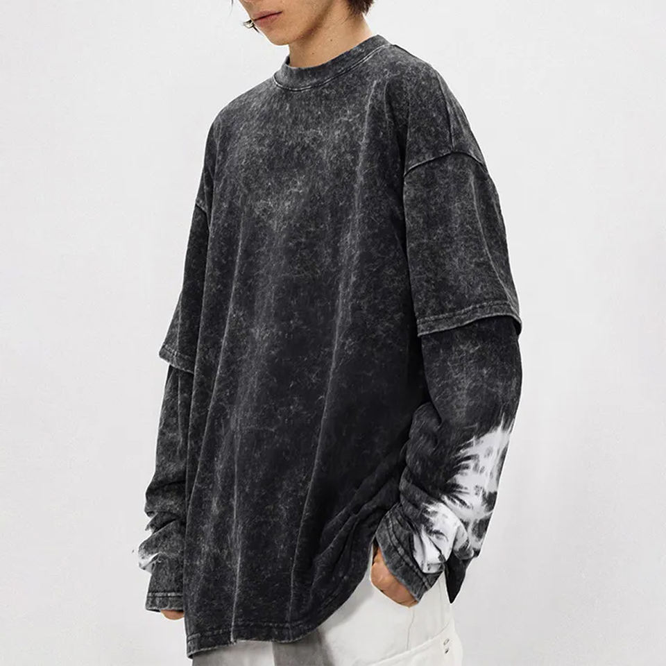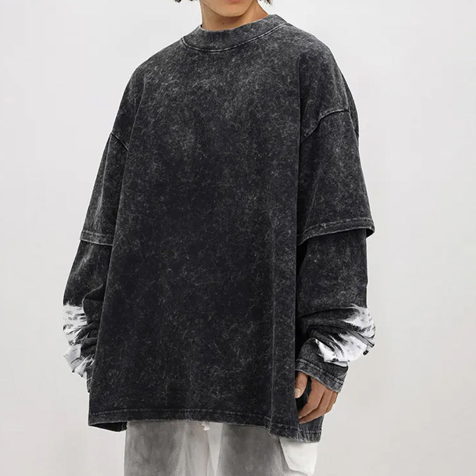 Product name:Men Acid Wash Double Sleeve Shirt
