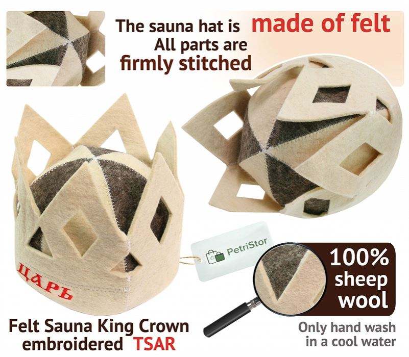 Wholesale Customized 2mm White 100% Wool Crown Design Felt Sauna Hat in Bathroom or Sauna Room