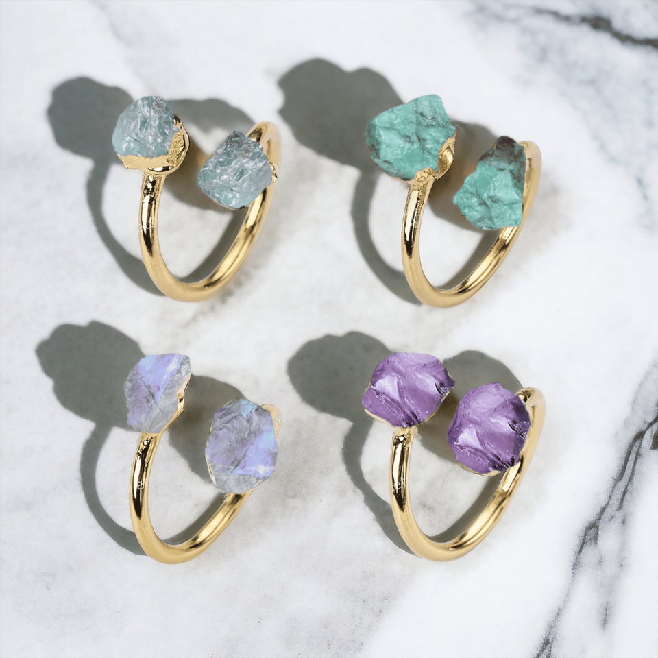Wholesale Customized Adjustable Aquamarine Crystal Diamond Ring Natural Gemstone Healing Jewelry for Engagement Parties
