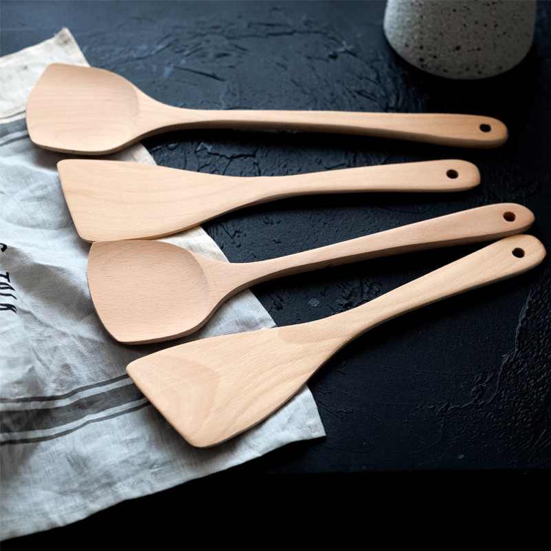 Wholesale Customized Beech Wood Cooking Tool Sets Logo Imprinted Spoon Spatula Fork Ladle Tong Turner for Kitchen Serving
