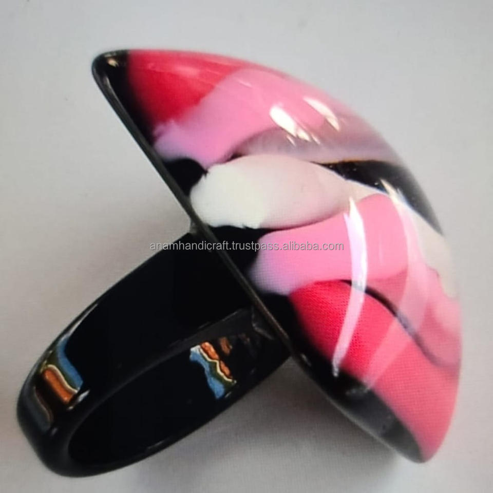 Wholesale Customized Best Quality Handcrafted High Polished Beautiful Colorful Fashion Resin Ring for Women Handmade in India