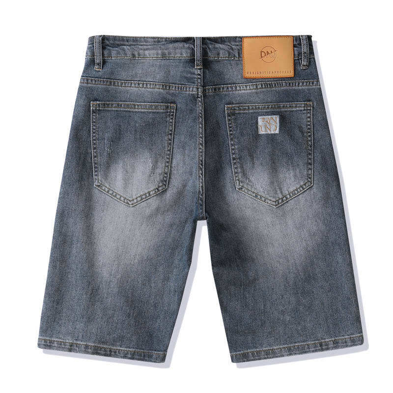 Wholesale Customized Breathable Button Drawstring Jeans Shorts Mid Waist Distressed Faded Acid Wash Denim 100% Cotton Men