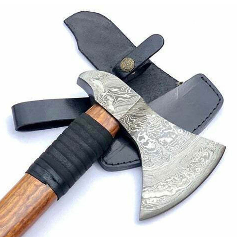 Wholesale Customized Bulk Orders OEM ODM Service Axe Damascus Steel Axe with Decorative Blade and Hardwood Handle for Outdoors