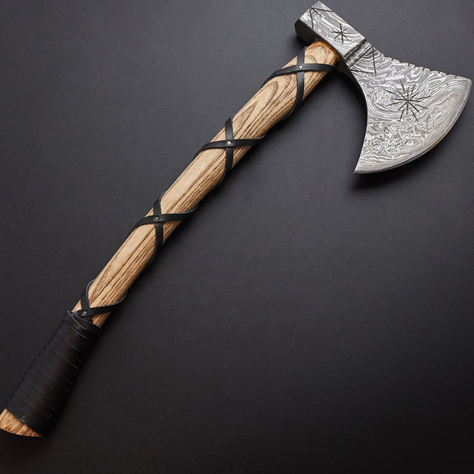 Wholesale Customized Bulk Orders OEM ODM Service Handmade Damascus Steel Axes Hand Forged Beautiful Pattern With Leather Sheath