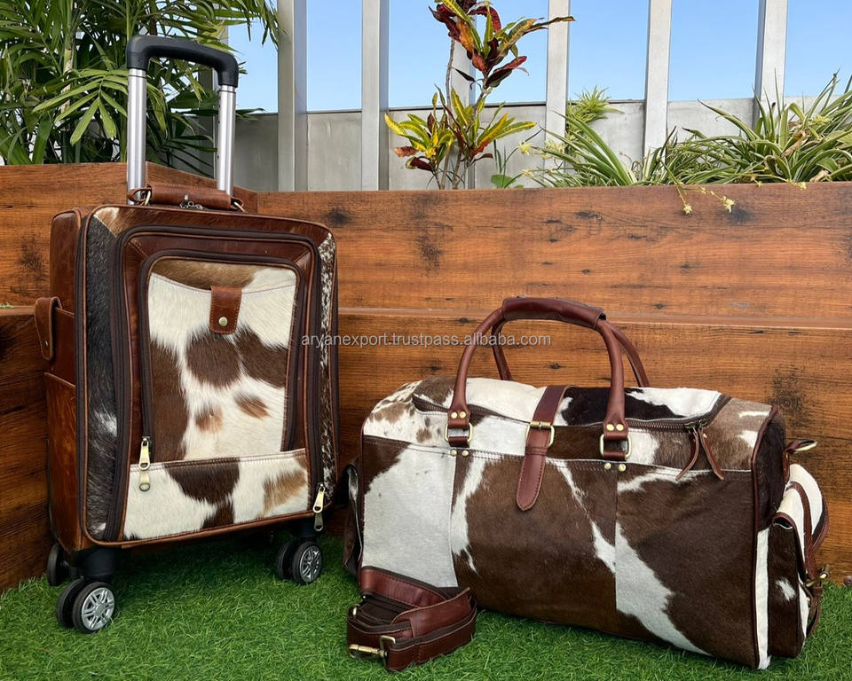 Cowhide Trolley and Cowhide Duffle Bag Set