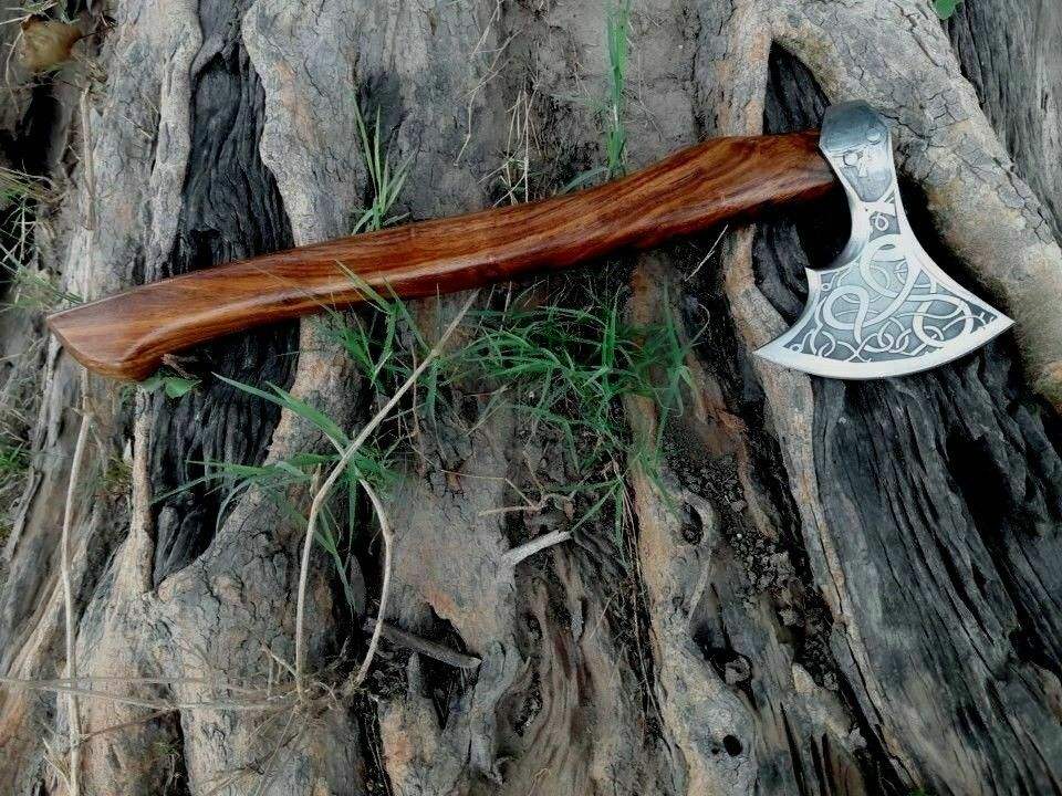 Wholesale Customized Industrial High Quality OEM ODM Service Handmade Damascus Steel Axe Head Rose Wood Handle Camping Cutting