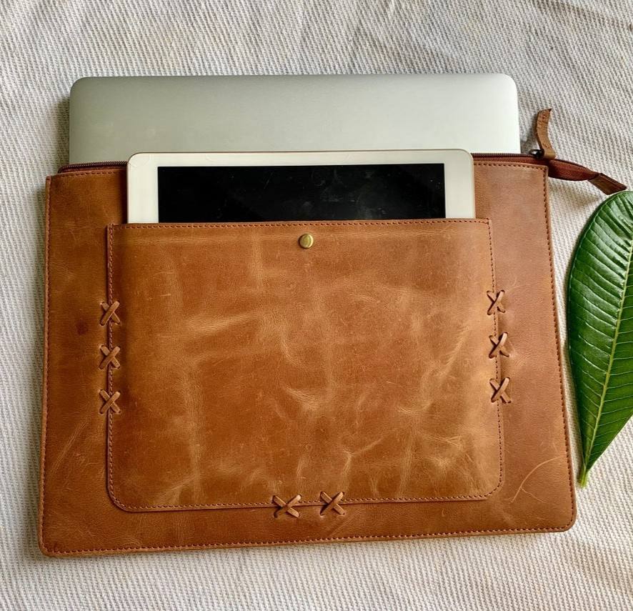 Wholesale Customized Leather LAPTOP Sleeve Zipper Pocket Sleeve COVER Work Business Protective Laptop Carry Cover Travel Case