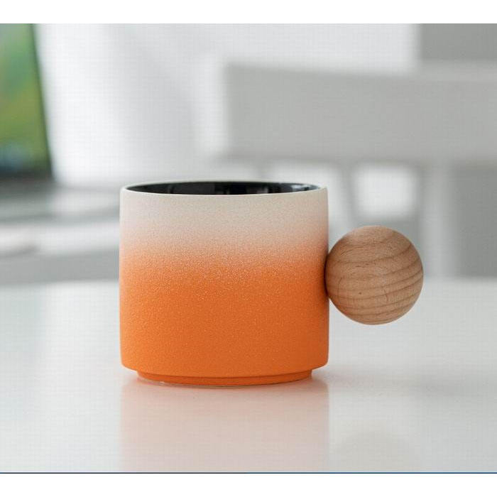 Wholesale 280ml Creative Frosted Classic Ceramic Coffee Mug with Wood Handle Insulated Cute Business Gift Customized Logo