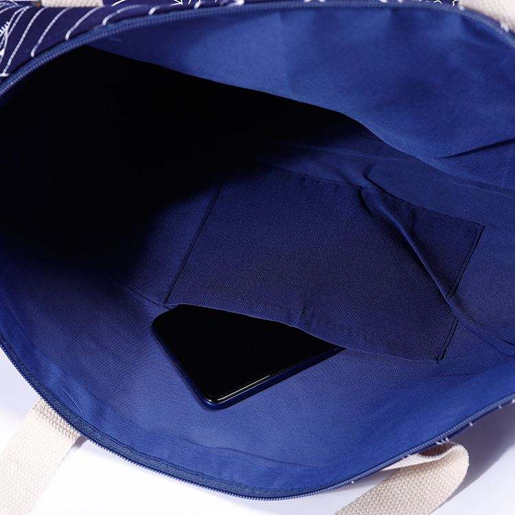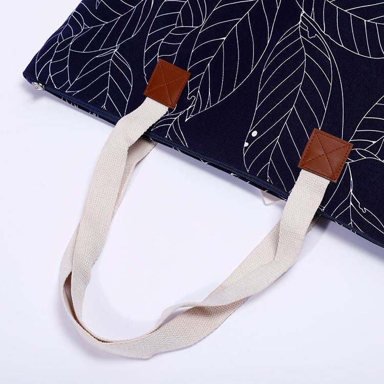 Wholesale Customized Logo Good Quality Durable Canvas Tote Bag with Pocket Vintage Zipper Closure Beach Handbags
