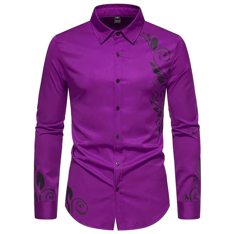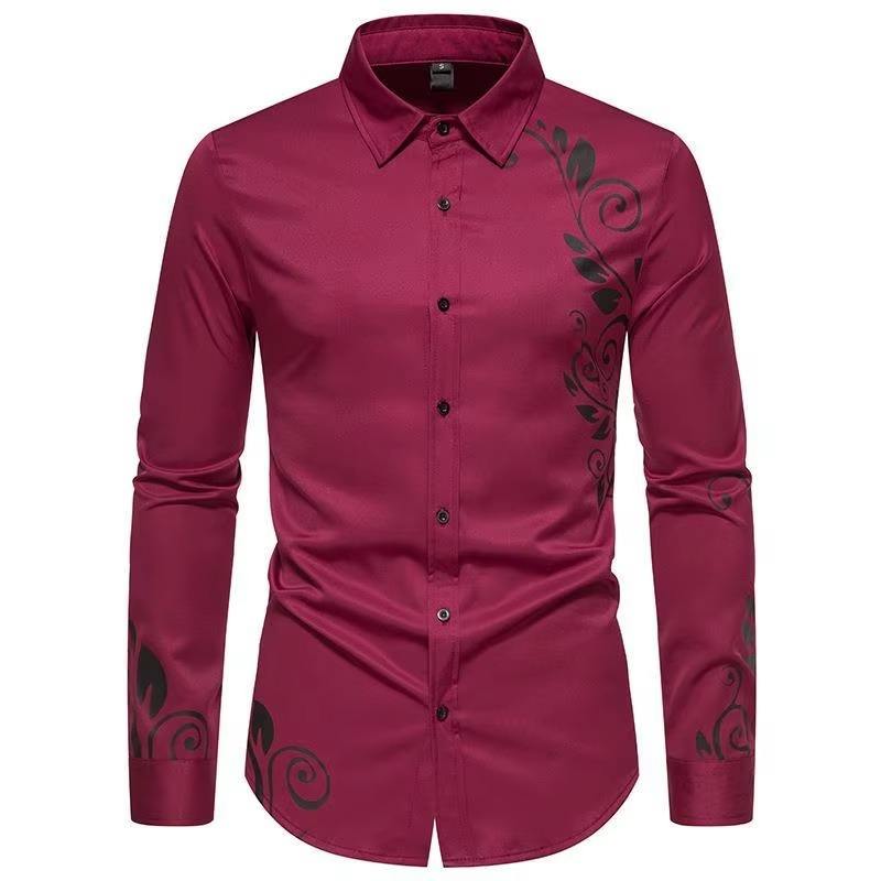 Wholesale Customized Men's Summer Casual Satin Shirt Long-Sleeved Stretch Print Single Breasted Closure Breathable