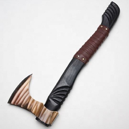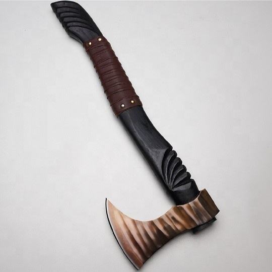 Wholesale Customized OEM ODM Cutlery Factory Handmade High Carbon Steel axe Wooden Handle and Fine Leather Sheath Trending axe