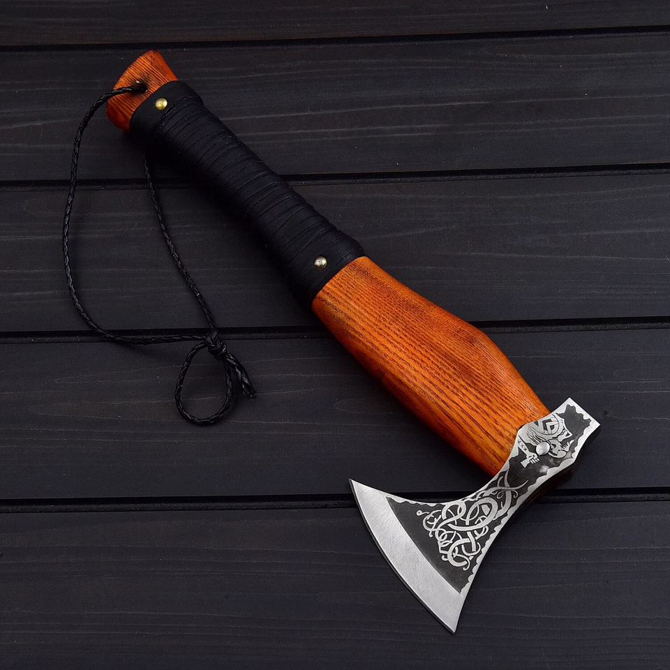 Wholesale Customized OEM ODM Cutlery Factory Axe Handcrafted High Carbon Steel Leather Sheath Wood Handle Industrial Grade Axe