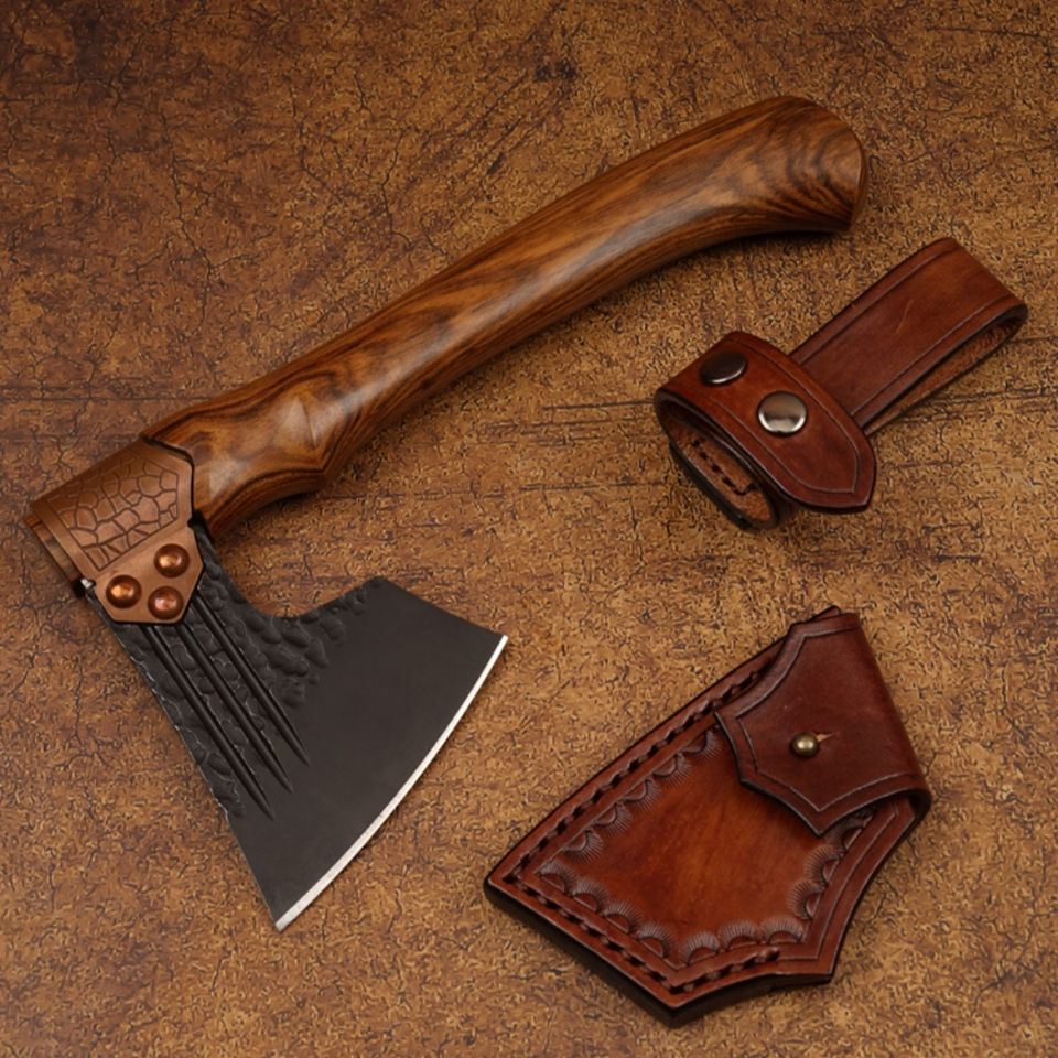 Wholesale Customized OEM ODM Cutlery Factory Multifunctional Outdoor Tools Portable High Carbon Steel Forged Long Wooden Handle