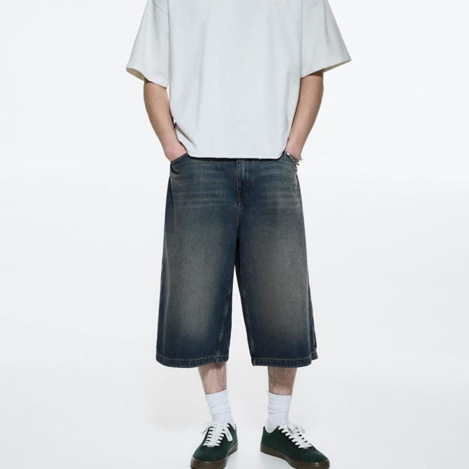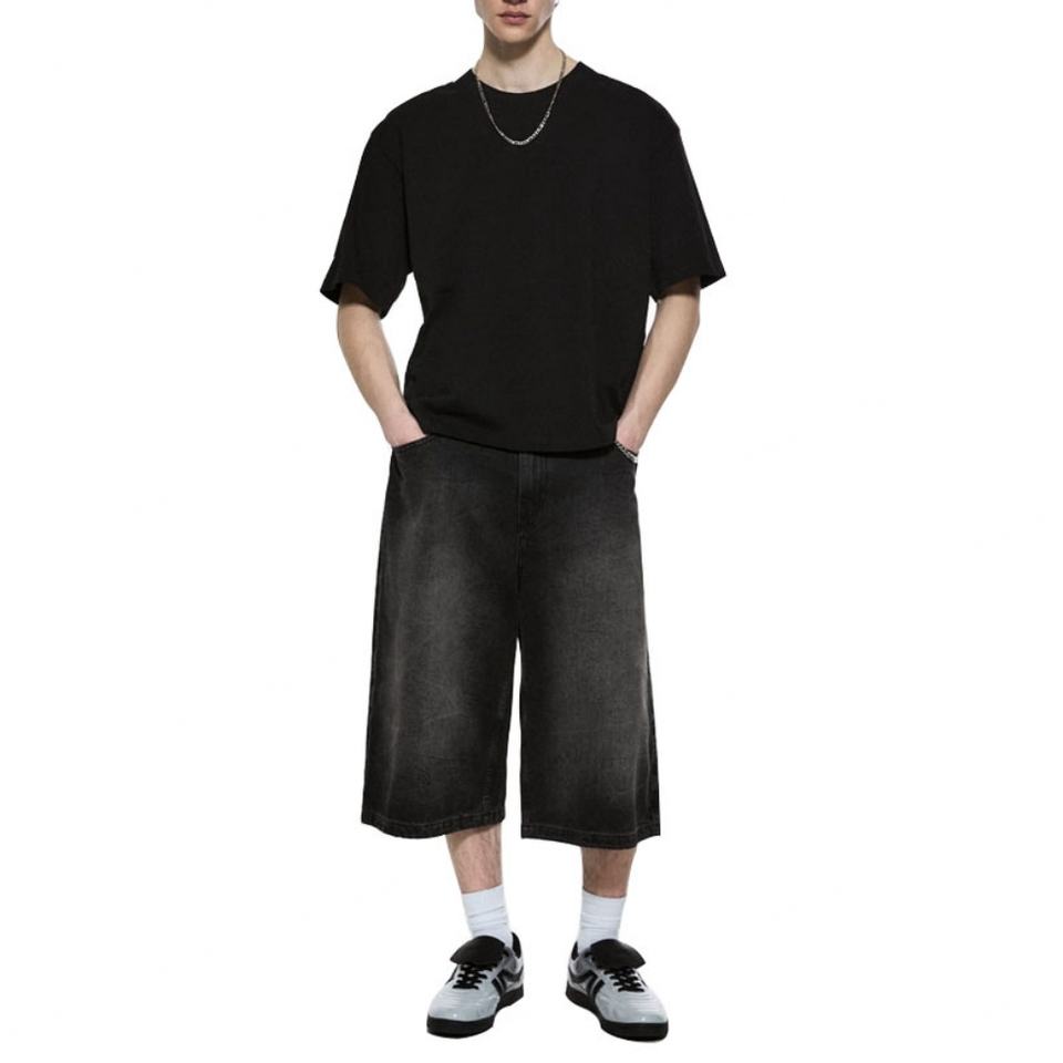 Wholesale Customized Oversized Cropped Jean for Men Vintage Wash Five Pockets Baggy Casual Fit Denim Shorts