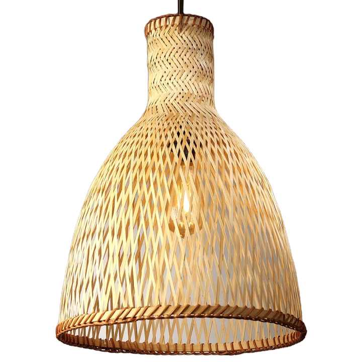 Wholesale Customized Size Long Bamboo Lampshade Night Light Woven Rustic Bamboo Hanging Lamp Cozy