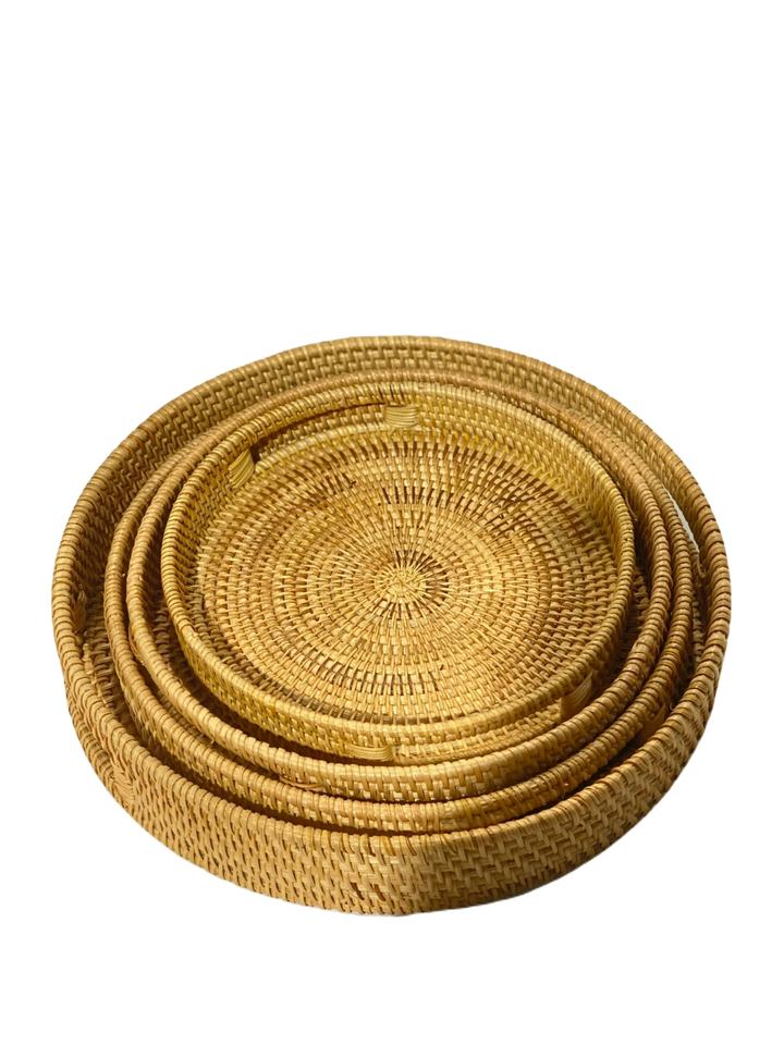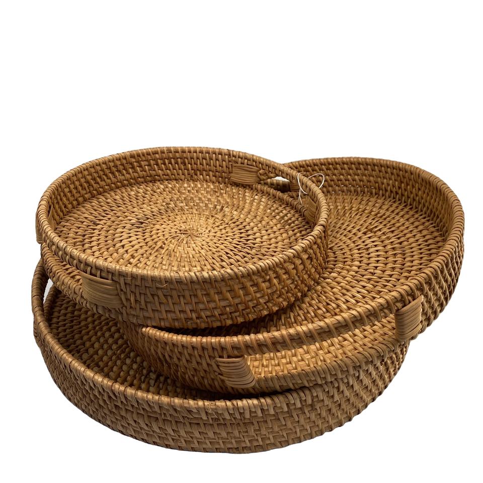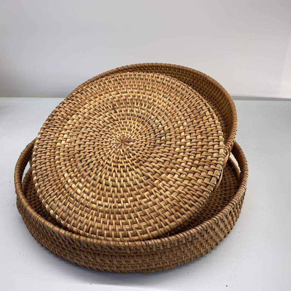 Wholesale Customized Size Natural Round Rattan Tray Handles Basic Model Handmade Vietnam Home Storage Decor Food Toy Storage
