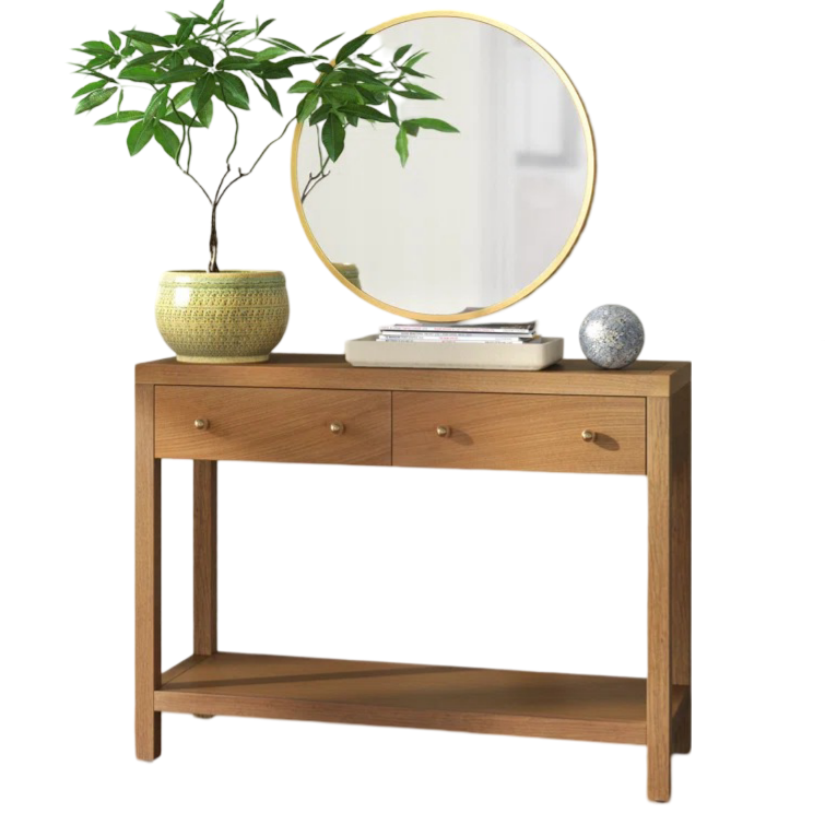 Wholesale Customized Stain Resistant Acacia Solid Wooden Console Tables with 2 Storage Drawer for Living Room