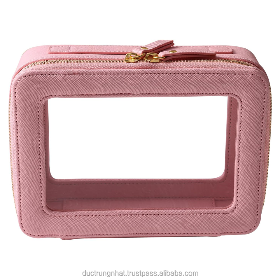 Customized Women's Travel Cosmetic Pouch Eco-Friendly Waterproof Makeup Storage Bag Zipper Closure Made Leather Wholesale Candy