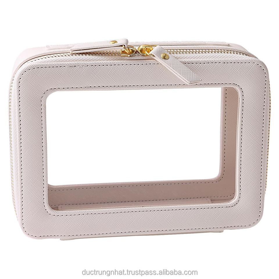 Wholesale Customized Eco-Friendly Travel Size Leather Cosmetic Pouch Candy Pattern for Toiletry Storage Makeup Bag Zipper