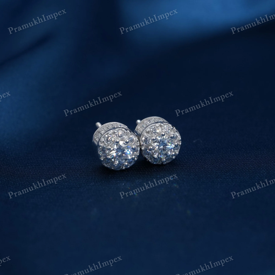 Wholesale Customized Unisex VVS Moissanite Cut Diamond Stud Screw Back Earring Solid Gold Plated Hip Hop Style for Gift