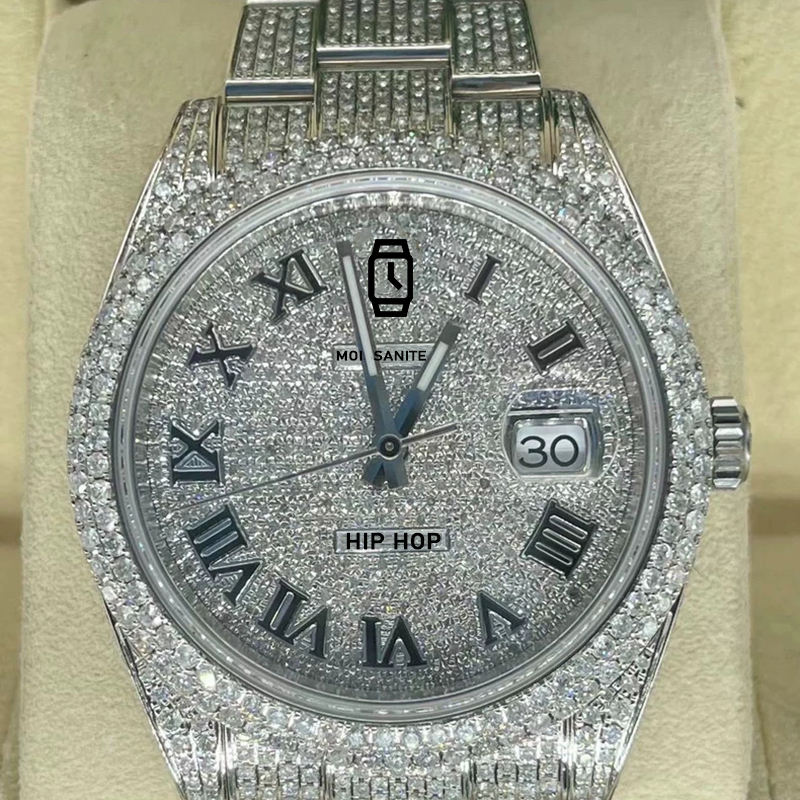 Wholesale Customized Stainless Steel VVS D Moissanite Sport Water Resistant Iced Mechanical Pointer Dial Men's Watch