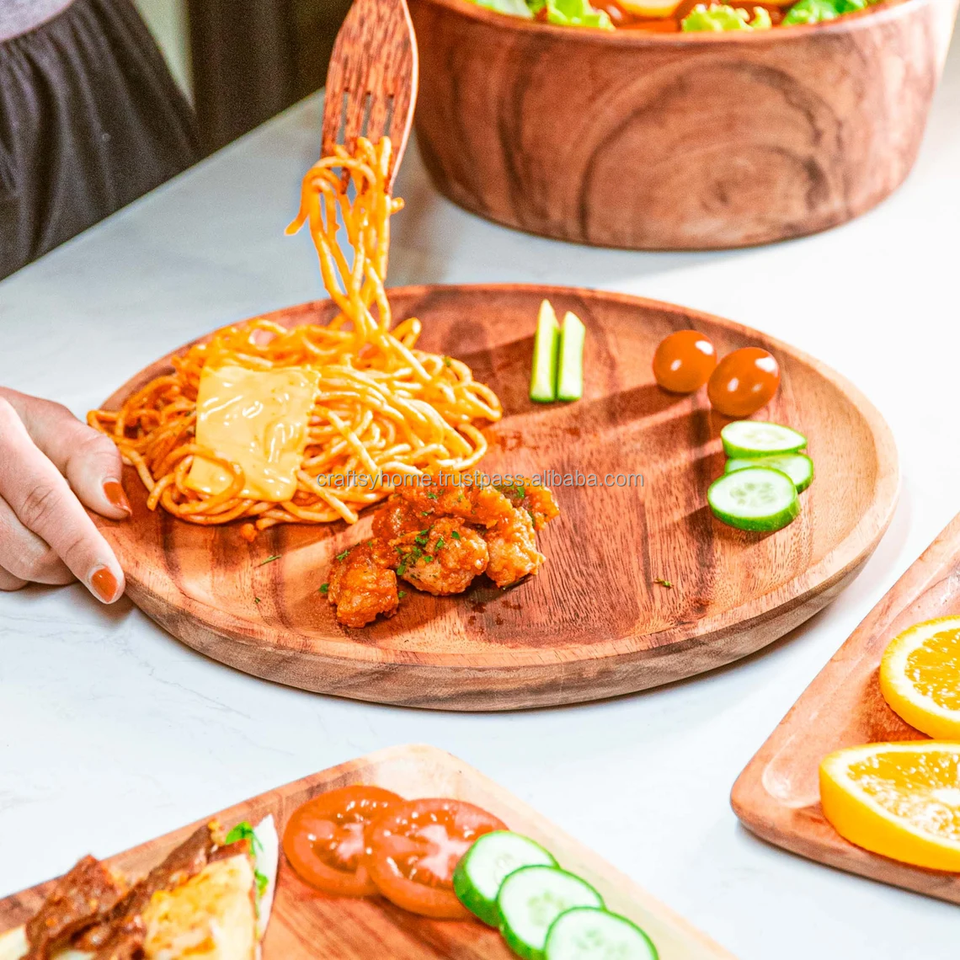 Wholesale Customized Solid Black Polished Acacia Wood Dinner Charger Plates Handmade Dessert Wood Crafts Wooden Boxes Wall Signs