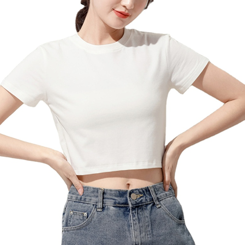 Wholesale Customized logo Round Neck Short-sleeved Plain Women Crop Top T-shirt Ladies Sexy Crop Top Shirt