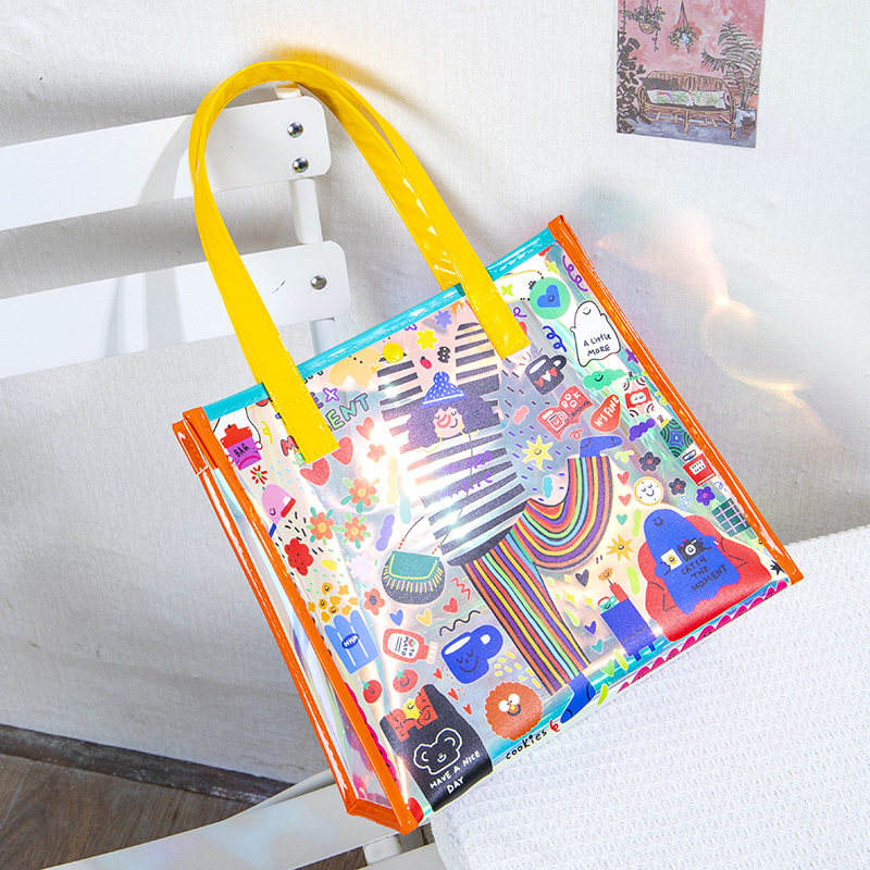 Wholesale Customizes PVC Yoga Bag Printed Cartoon Pattern Women Travel Beach Bag Portable Durable Shoulder Handbag Outdoor Use