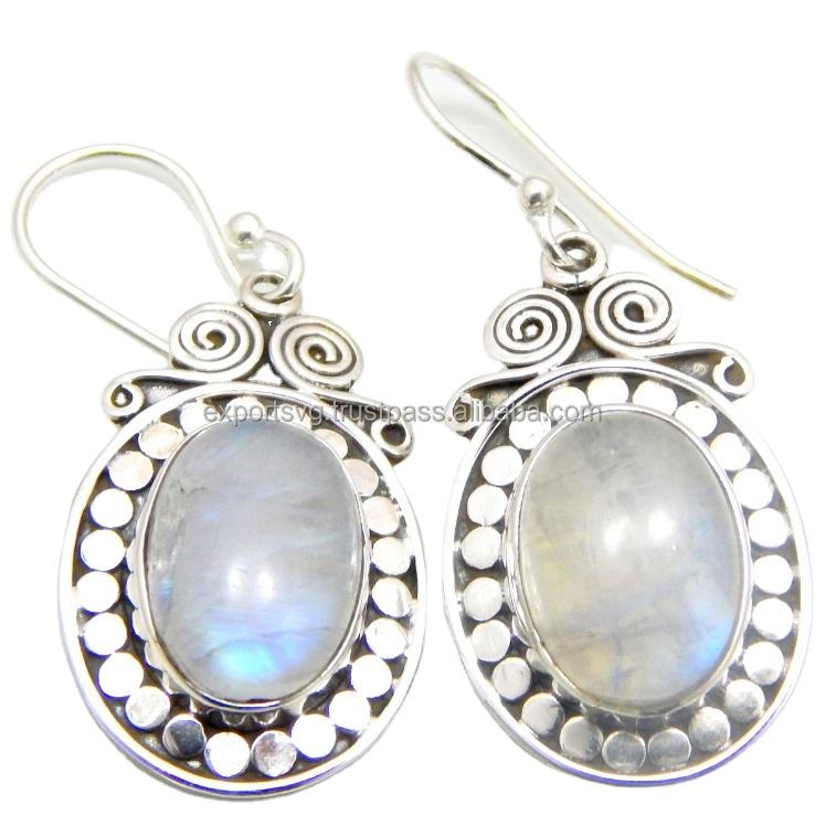 Wholesale Cute Gold Jewelry Natural Rainbow Moonstone Silver Drop Earrings for Women Wedding Party Gifts in Western Stone Style