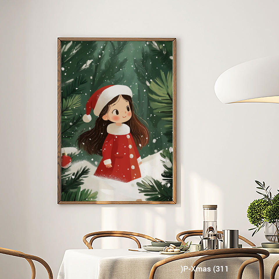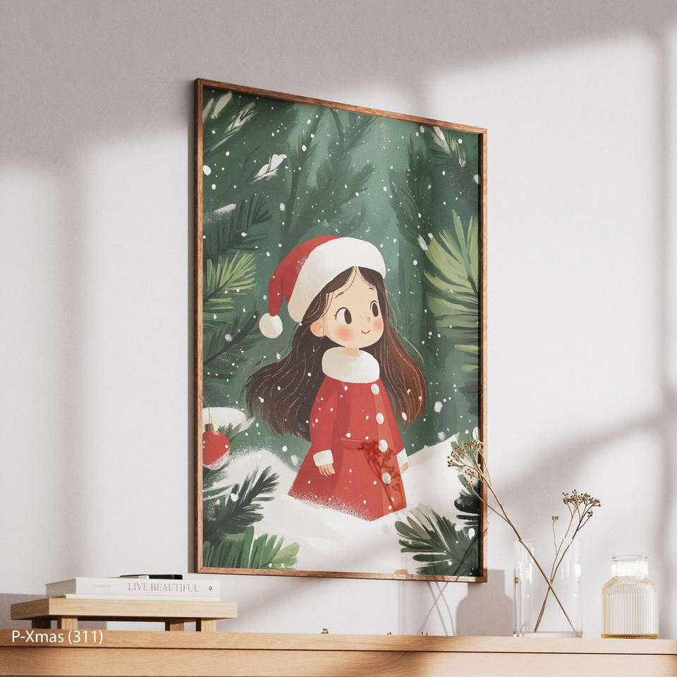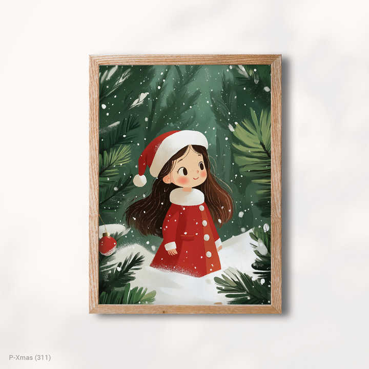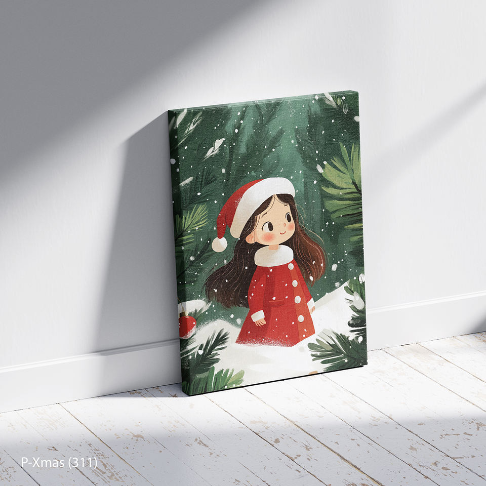 Wholesale Cute Santa Girl in Snowy Forest Modern Wood Frame Canvas Art Premium Christmas Decor
