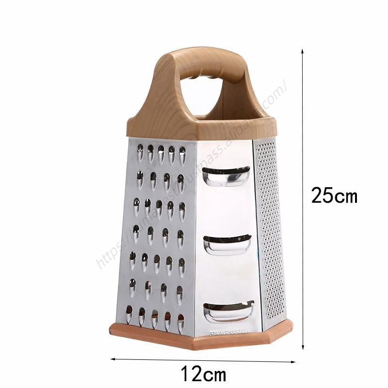 Wholesale DD1080 Kitchen Gadgets Wood Handle Chopping 6 in 1 Multifunctional Grater Stainless Steel Box Peeler Slicer