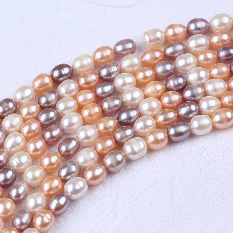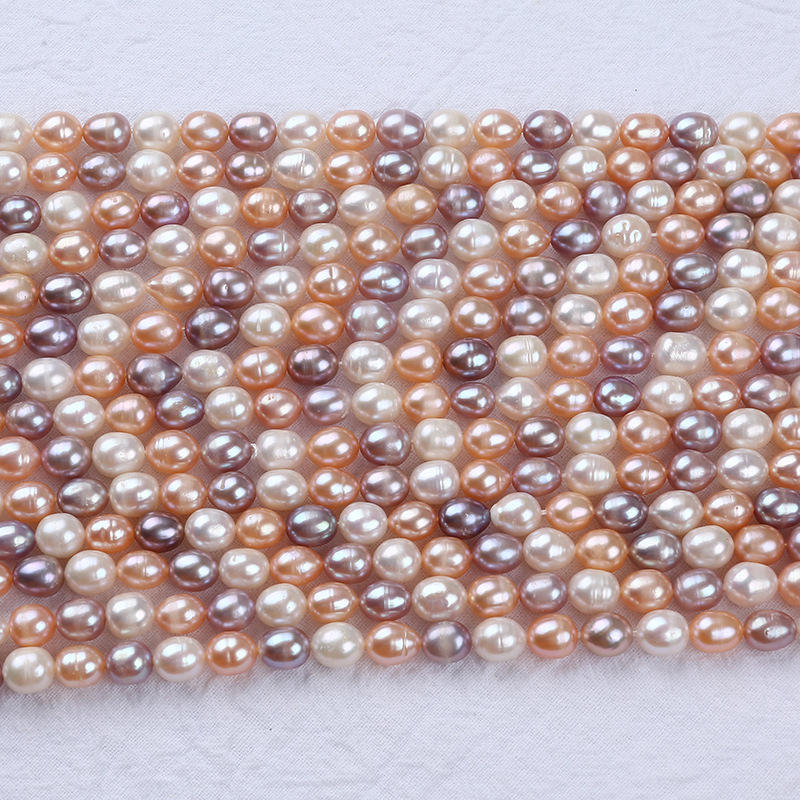 Wholesale DIY Button Shape Freshwater Pearls 7-8mm Loose White Purple Rice Beads Mixed Colors for Necklace Bracelet Making