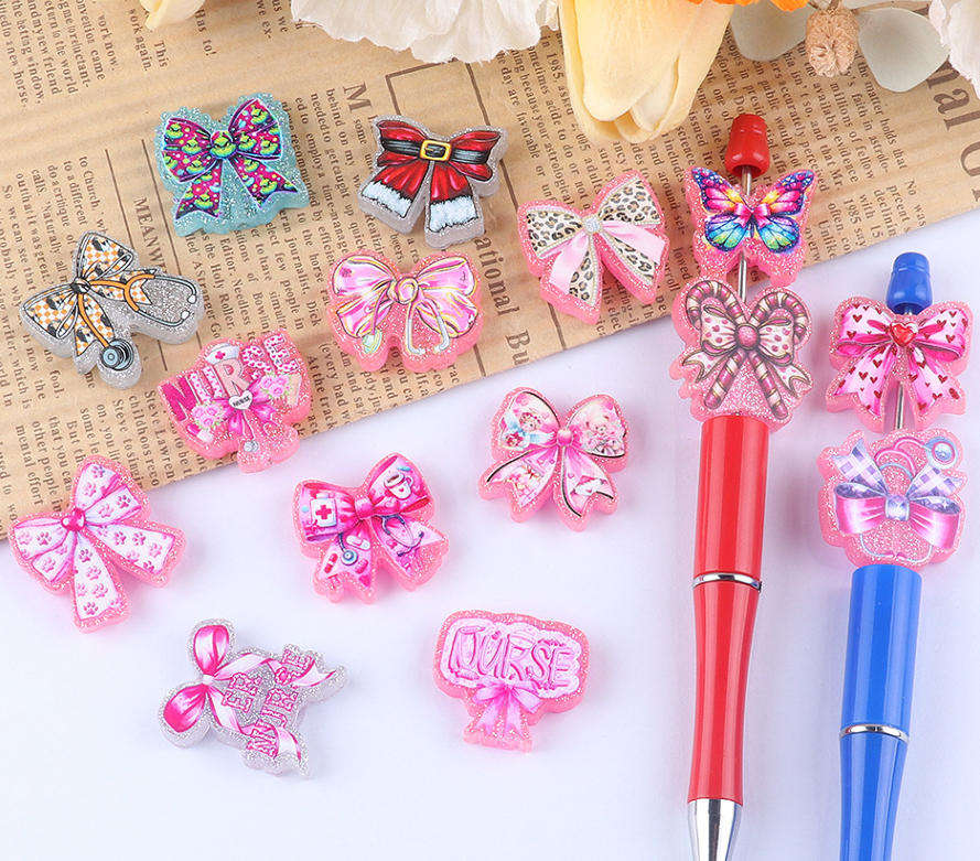 Wholesale DIY Handcrafted Customizable Cartoon Glitter Acrylic Flatback Focal Beaded Planar Hole Nurse Plate Sticker Pen Badge