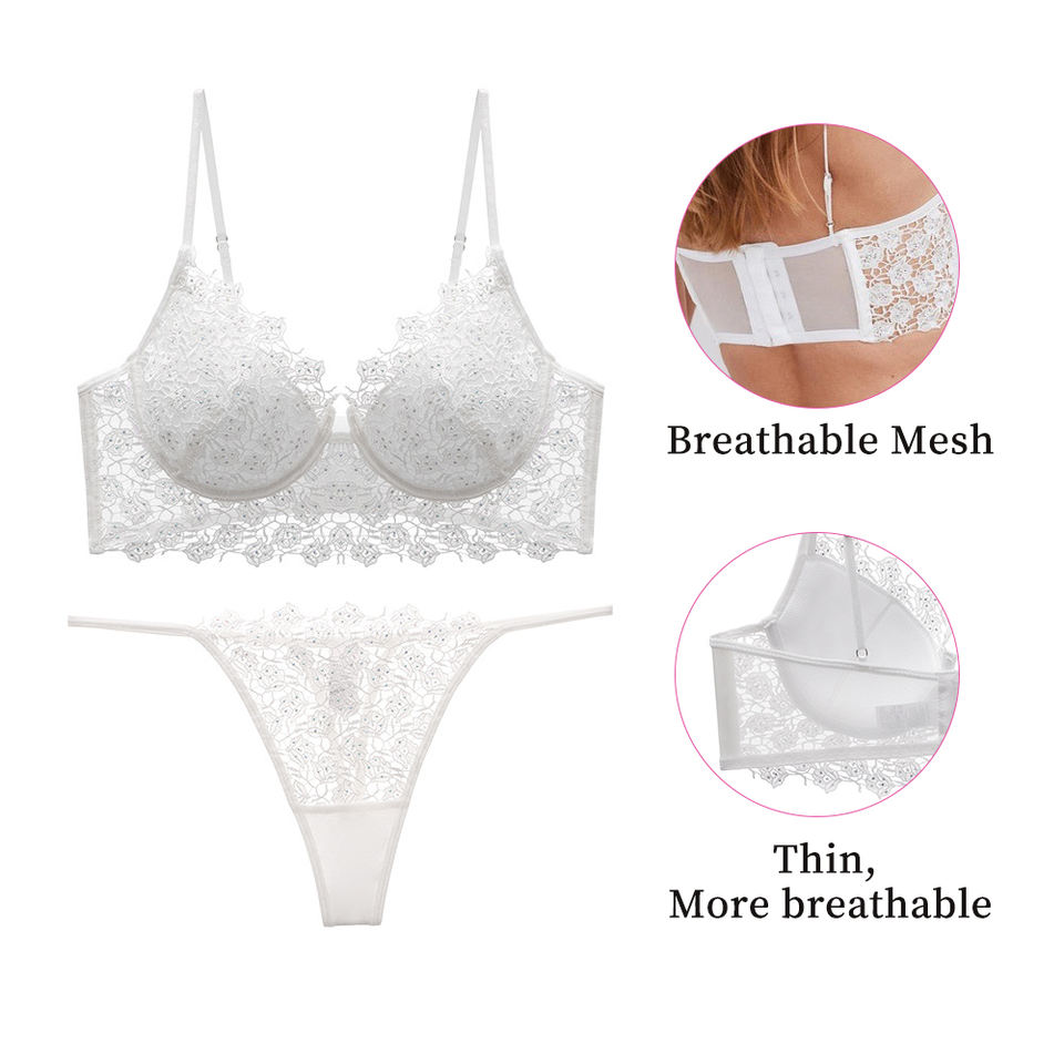Product name:Sexy Rhinestone Rose Embroidered Bra Set