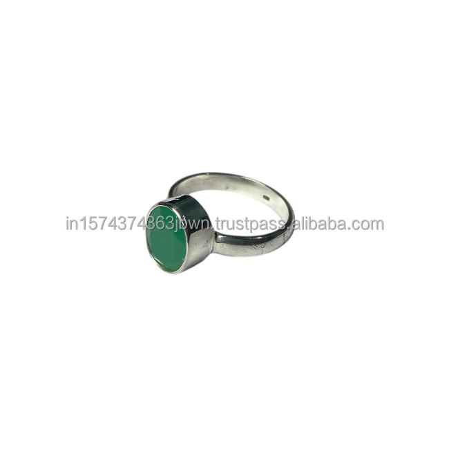 Wholesale Dainty 925 Sterling Silver Women's Statement Ring Handmade Natural Green Onyx Gemstone Bezel Setting Oval Cut Parties
