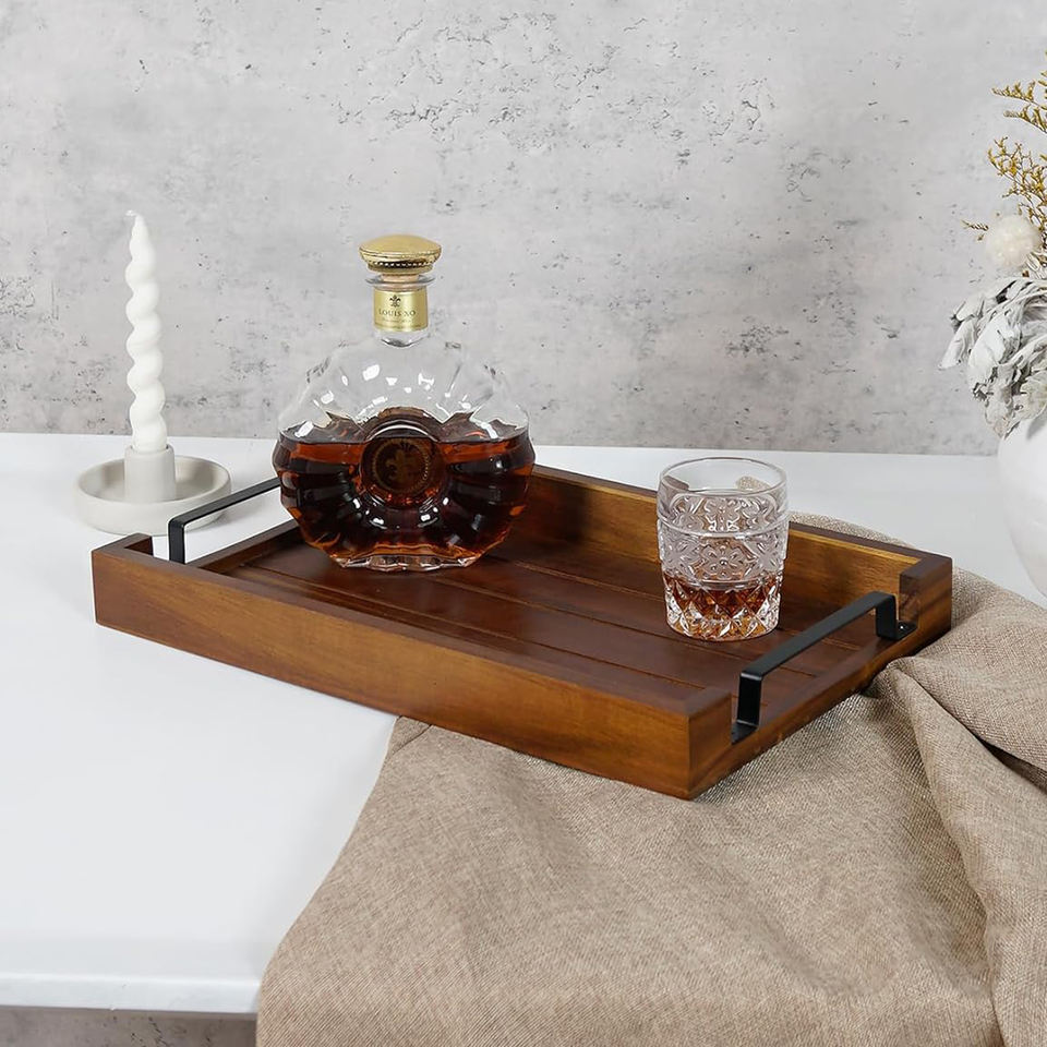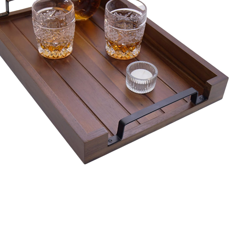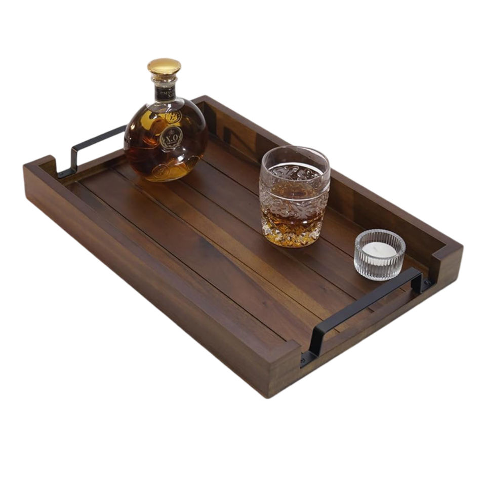 Product name:Acacia Wooden Dark Color Serving Tray with Black Iron Handle