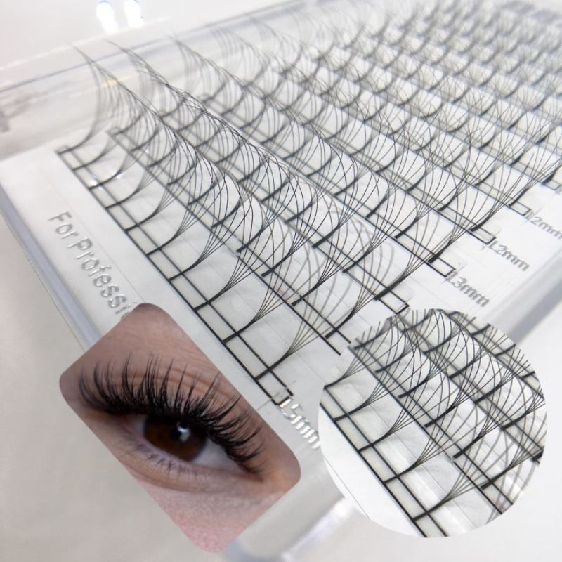 Wholesale Dark Matte 3D-12D Natural Black CC for 0.05mm Long Stem Premade Volume Lash Extension with 12 Rows