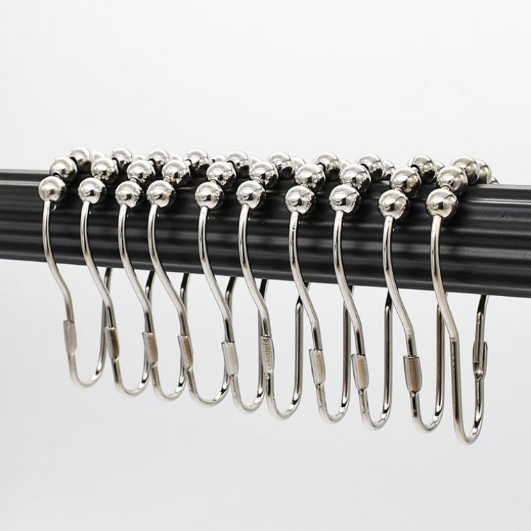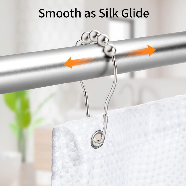Wholesale Decorative 5 Roller Shower Curtain Rod Rings Hooks for Bathroom