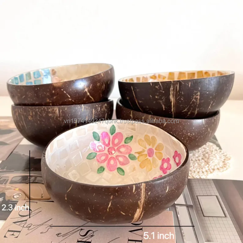 Wholesale Decorative Coconut Bowls Handmade with Mother of Pearl Coconut shell bowl MOP coconut bowl for Home Decor