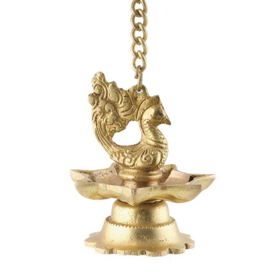 Product name:Brass Peacock 7 Wick Hanging Oil Lamp