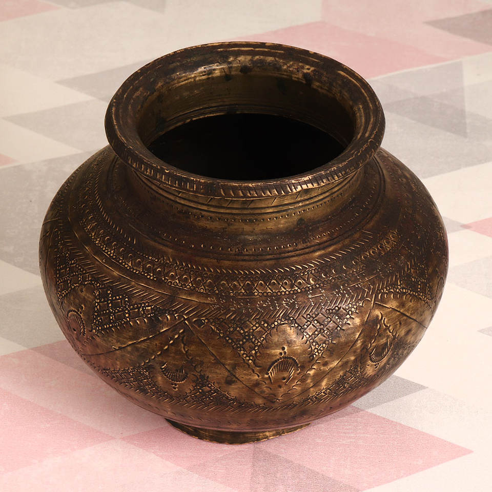 Product Name:Beautifully Engraved Brass Water Pot for Ritual and Decor