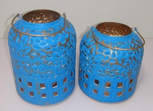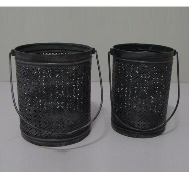 Wholesale Decorative Hollow-Out Metal Lanterns Large Cylinder Iron Pillar Candle Holder Indoor Garden Hanging Lantern withHandle