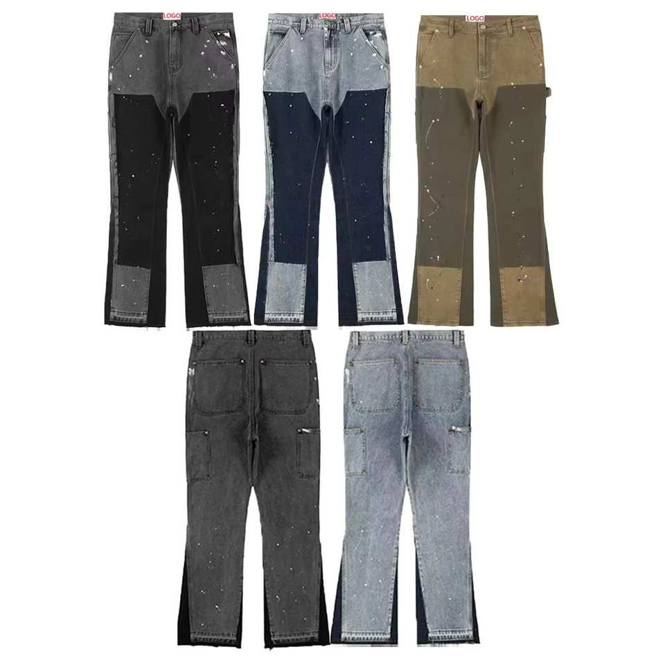 Wholesale Department Contrast Color Unique Cut Edge Flared Pants Factory Paint Splash Custom Made Gallery Men's Jeans