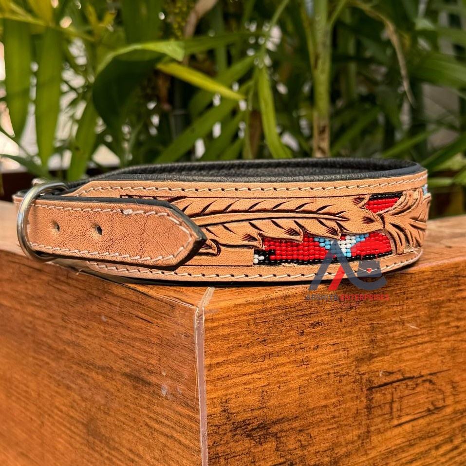 Product Name:Hand Tooled Leather Beaded Dog Collar